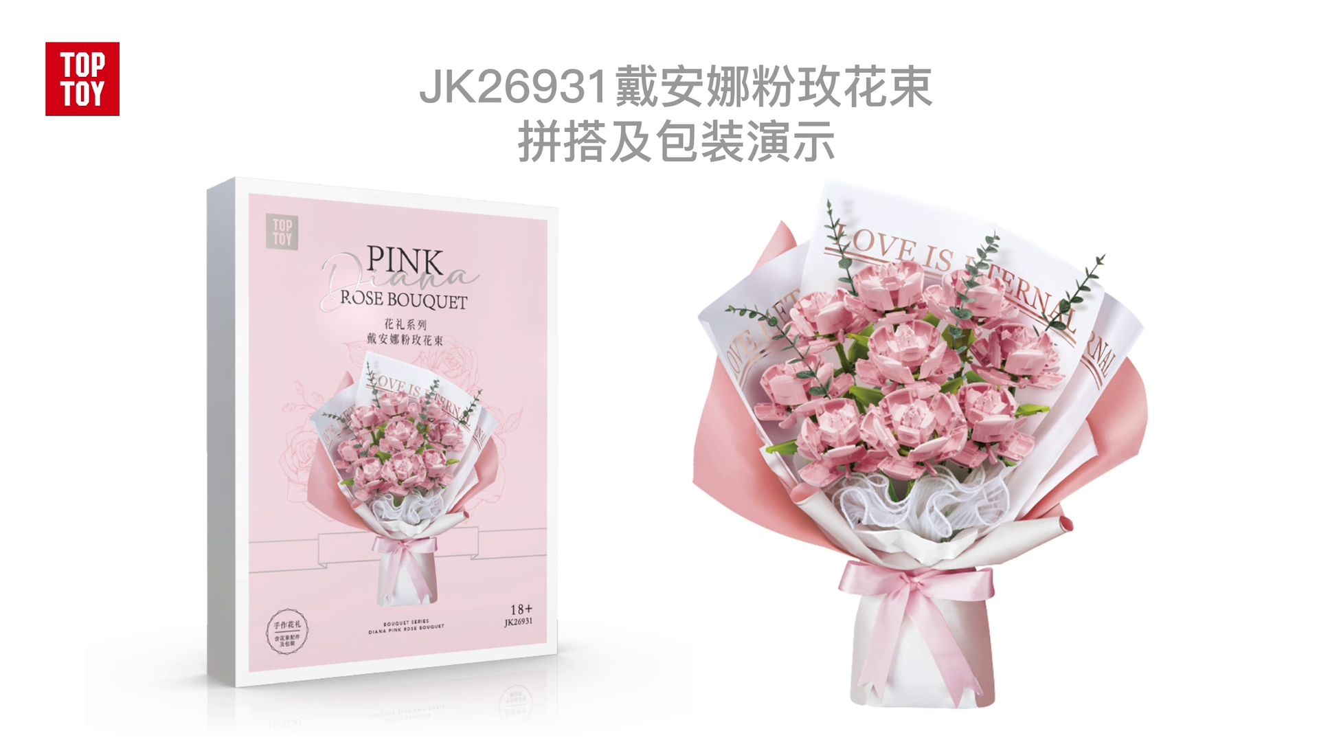 JK26931 戴安娜粉玫花束-拼裝及包裝演示
